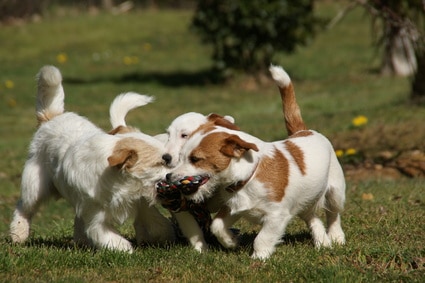 L’acquisition des règles de la vie sociale en meute, c’est-à-dire des lois de hiérarchie, constitue le dernier aspect fondamental de la socialisation intra-spécifique du chien. Cet apprentissage va lui permettre d’interagir correctement avec ses congénères et donc de bien s’intégrer à la meute.