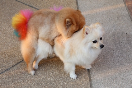 La chienne s’occupe activement de ses petits : elle les lèche pour les nettoyer, les pousse vers ses mamelles. Elle s’attache à eux et supporte mal leur absence. La position de nettoyage deviendra la position de soumission du chien à l’âge adulte.